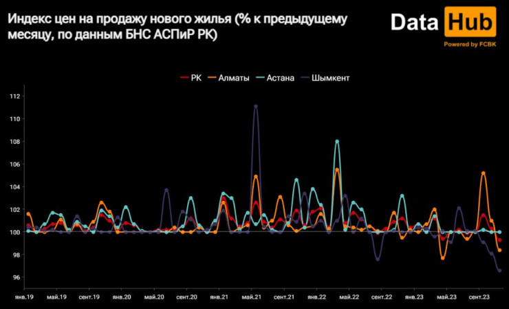 Новое жилье в Казахстане подешевело рекордными темпами, сообщает аналитический Telegram-канал Data Hub со ссылкой на данные Бюро национальной статистики, передает Tengrinews.kz.