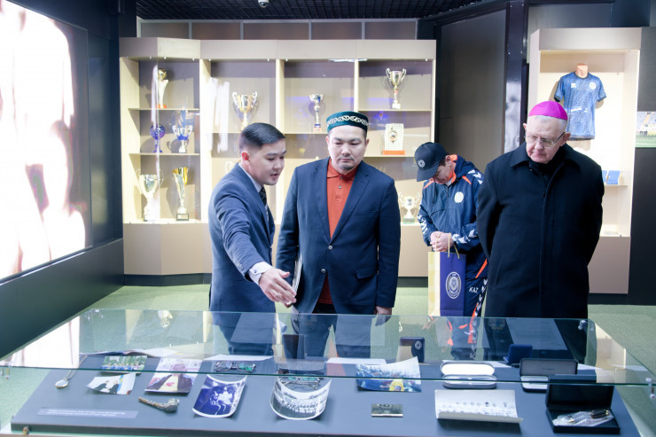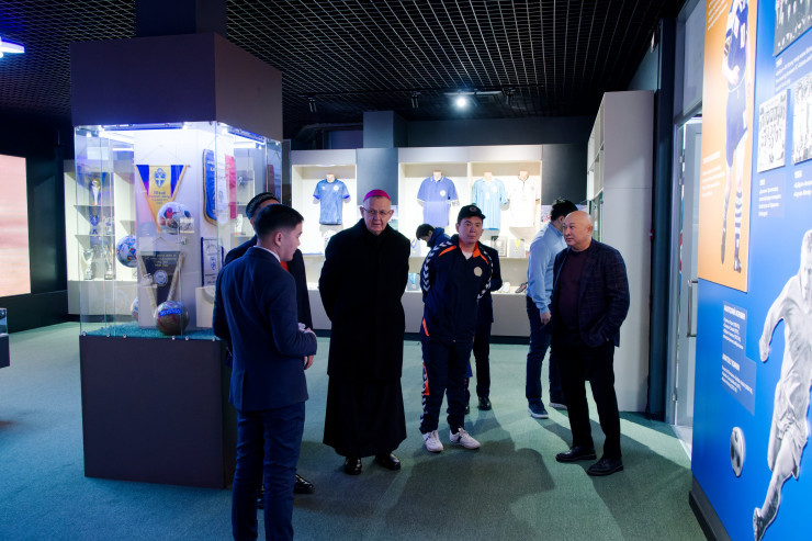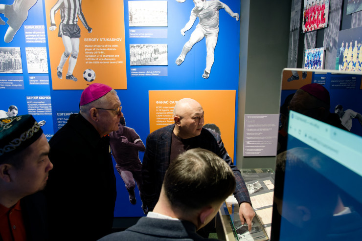 Следом президент КФФ проводил почетных гостей в музей казахстанского футбола. Там Алмасу Ерназарову, Ерболату Жусупову, Томашу Пэта и Сергею Кану была вкратце пересказана вся история отечественного футбола, а также показаны музейные экспонаты в виде футболок с памятных матчей и видеофрагментов.