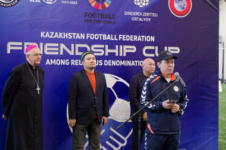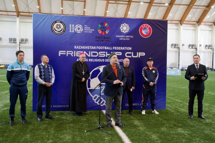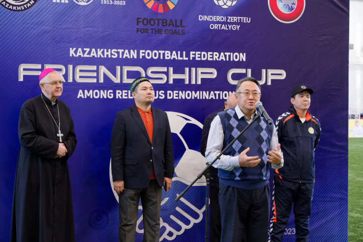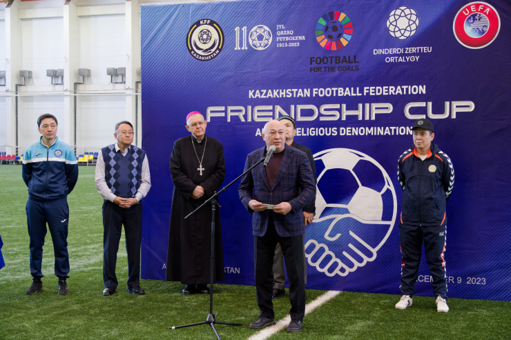 "Уважаемые любители футбола, друзья и гости! Приветствую всех! В нашей стране объединены 18 религиозных конфессий и свыше 3800 религиозных ассоциаций. Мы все живем в дружбе под одним шаныраком, уважая друг друга! Сегодняшний Кубок дружбы нацелен на созидание, мы пропагандируем мир и добро, мир и согласие. Кубок проводится при поддержке УЕФА. Этот турнир - олицетворение национальной идентичности, культурного многообразия и социальной солидарности. Я очень рад видеть в Доме футбола наших гостей. Пусть этот турнир принесет всем нам радость, только положительные эмоции. Мы приняли решение, что этот турнир будет ежегодным. Мы хотим придать ему очень высокий статус, тем более он приурочен ко Дню независимости РК. И, самое интересное, 10 декабря - Международный день футбола. Поэтому все не просто так. Благодарю вас, уважаемые участники! Сделаем это традицией".