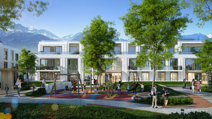 "Архитектурная композиция двора спроектирована нами таким образом, чтобы он был приватным, но при этом с ощущением открытости, сохраняя возможность для большего обзора гор, гольф-поля, города, - отметил архитектор Нурлан Камитов. - Ландшафт жилого комплекса будет уникальным, мы спроектировали его с учетом нашего международного опыта работы. Дворовое пространство, согласно концепции ландшафтного дизайна, выполнено не только в горизонтальной плоскости. Проектом также реализована концепция объемных элементов озеленения, мест для отдыха и интегрированной в холмистый ландшафт детской площадки".