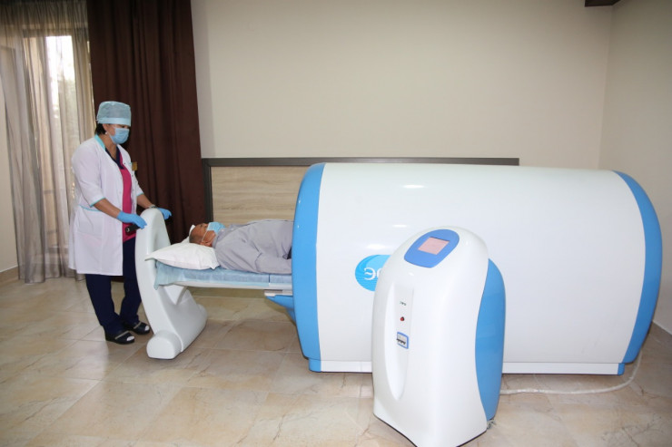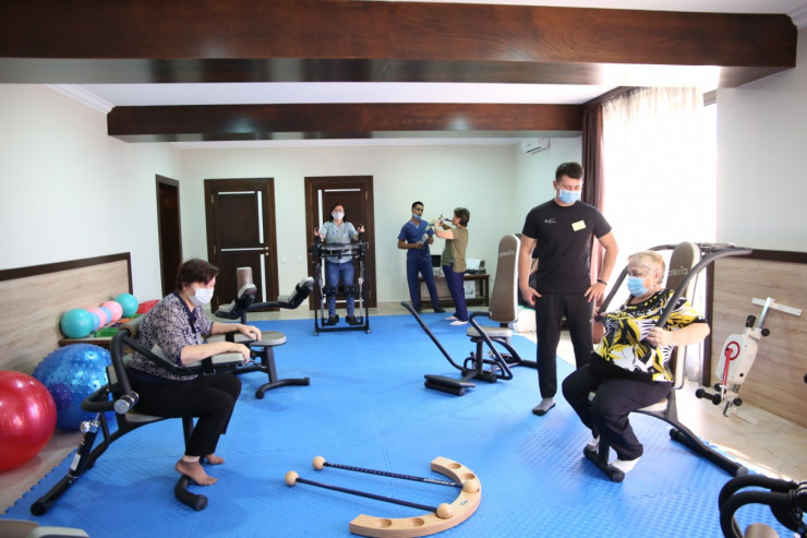 "Дыхательные упражнения проводятся с помощью новых аппаратов, улучшающих вентиляцию легких и повышающих их объем. Тяжелобольные пациенты занимаются на стимулирующих тренажерах, где они не нагружаются. Их фиксируют, благодаря чему работают строго необходимые группы мышц. В среднем за день пройти курс лечебной физкультуры могут более 80 человек", - рассказал инструктор лечебной физкультуры Изимжан Кибиров.