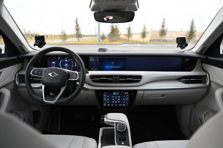 Эксперты особо отмечают нестандартную панель с экранами у турецкого электромобиля. Табло на ширину всей передней панели, еще один экран под центральными дефлекторами обдува.