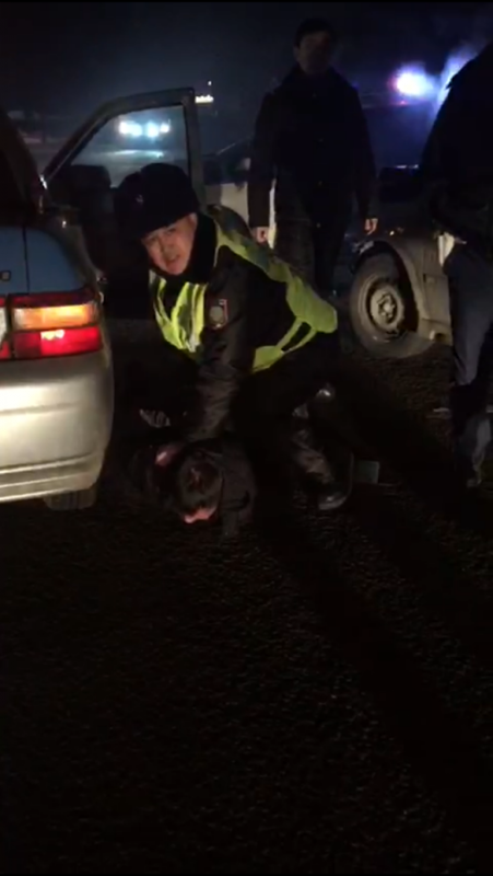 Затем, воспользовавшись заминкой стражей порядка, он попытался скрыться. Очевидец снова начал преследование нарушителя. Вскоре к нему присоединился и патруль. А водитель, продолжая побег, задел другой автомобиль марки Subaru. В итоге полицейским все-таки удалось его задержать. По словам очевидца, при задержании нарушитель заявил, что он и сам сотрудник органов внутренних дел. При этом, по словам очевидца, на нем был темный камуфляжный костюм и берцы.