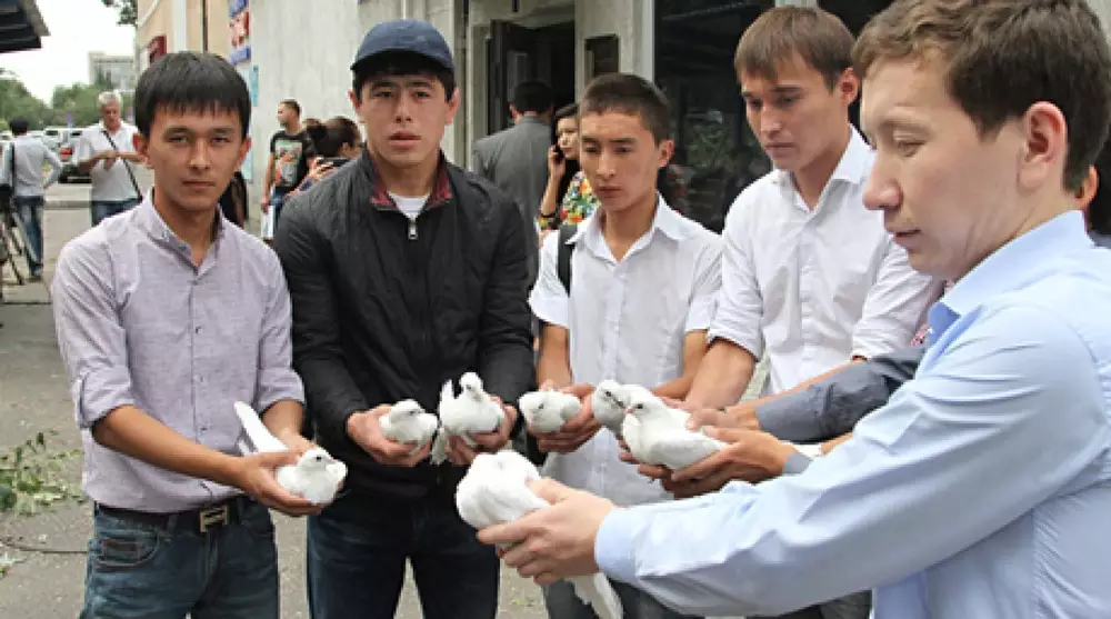 В оригинальной акции приняли участие 8 студентов. Один экземпляр письма они передали через сотрудников консульства генеральному консулу Франции в Алматы Гийому Наржоле. Два других письма были адресованы непосредственно властям Франции. Выкрикивая: "Аблязов, верни Казахстану миллиарды!" - активисты отправили письма по воздуху - голубиной почтой и с помощью воздушных шаров.