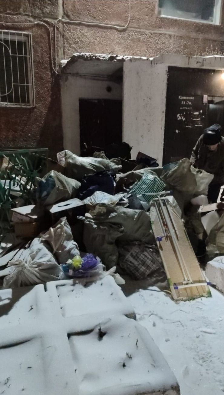 "Вся квартира, начиная от тамбура до туалета, забита мусором. Когда он стал нас топить, мы вызвали участкового. Мужчина долго не открывал дверь квартиры, а когда открыл, рассказал, что из-за мусора не мог вылезти, его там почти завалило. С его слов, он собирал этот хлам шесть лет. Зловоние ужасное, полная антисанитария. В соседних квартирах уже появились тараканы, клопы. Вчера две машины мусора вывезли, и, наверное еще столько же осталось", - рассказали жители дома.