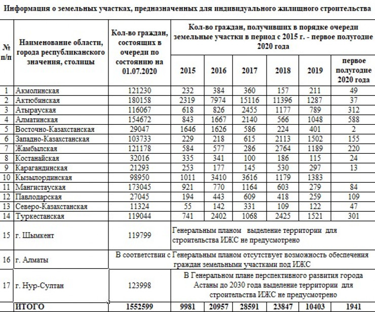 В Комитете по управлению земельными ресурсами объяснили причину промедления тем, что имеют определенные сложности при выдаче земель. К примеру, акиматы обязаны предоставить участки только с наличием рядом электричества и воды. В селах  можно выдать землю без водопровода.