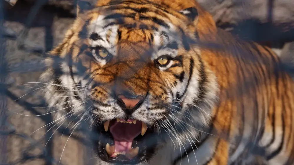 Мы застали момент, когда специалисты кормили амурских тигров через специальную защитную клетку: мясо опускали по трубе прямо в вольер.