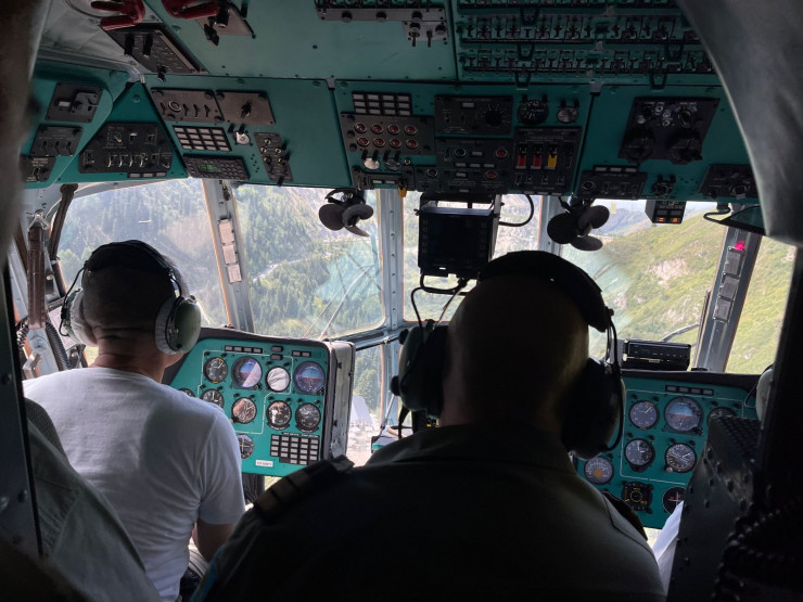 Чтобы показать ситуацию вживую, в акимате устроили пресс-тур прямо в горы на территории выше Шымбулака. Для журналистов организовали полет на вертолете, который находится на балансе "Казавиаспаса". Спасатели из ДЧС показали, каково состояние рек в горной местности.