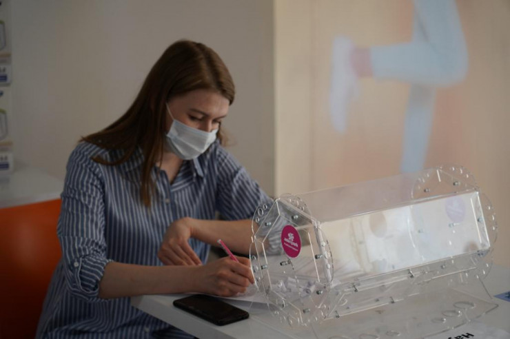 В пункте вакцинации ТРЦ Asia Park провели розыгрыш призов от предпринимателей с целью поддержки вакцинированных.