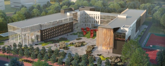 Дворец школьников возводит в новом административном центре Туркестана фонд "Самрук-Казына". Площадь здания - 9 250 квадратных метров.