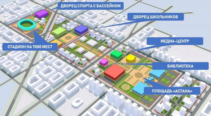 Площадь Астана будет создана на территории пяти гектаров. Строить ее будет акимат Астаны. На площади планируют построить навесы от солнца и разбить скверы. Строительство площади начнется в марте 2019 года и завершится в декабре 2020 года.