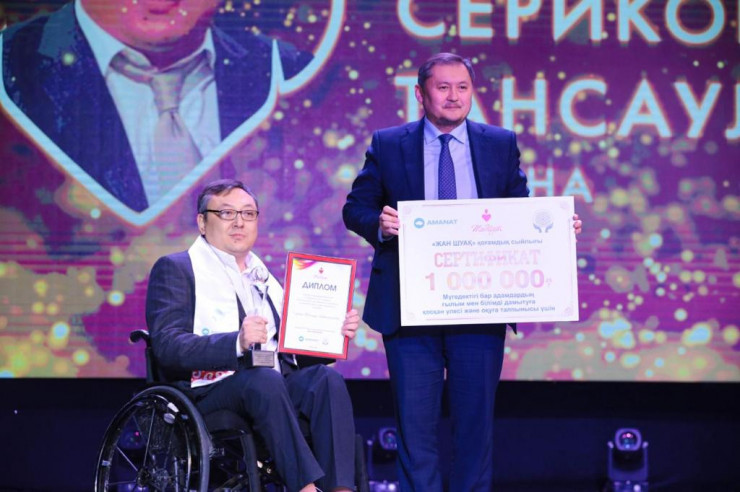 В номинации "За вклад в развитие науки, образовательной деятельности, за стремление к знаниям у людей с особыми потребностями" статуэтку получил Тансауле Сериков из города Астаны. Автор многочисленных научных работ, разработчик Концепции высшего и послевузовского образования для лиц с особыми потребностями.