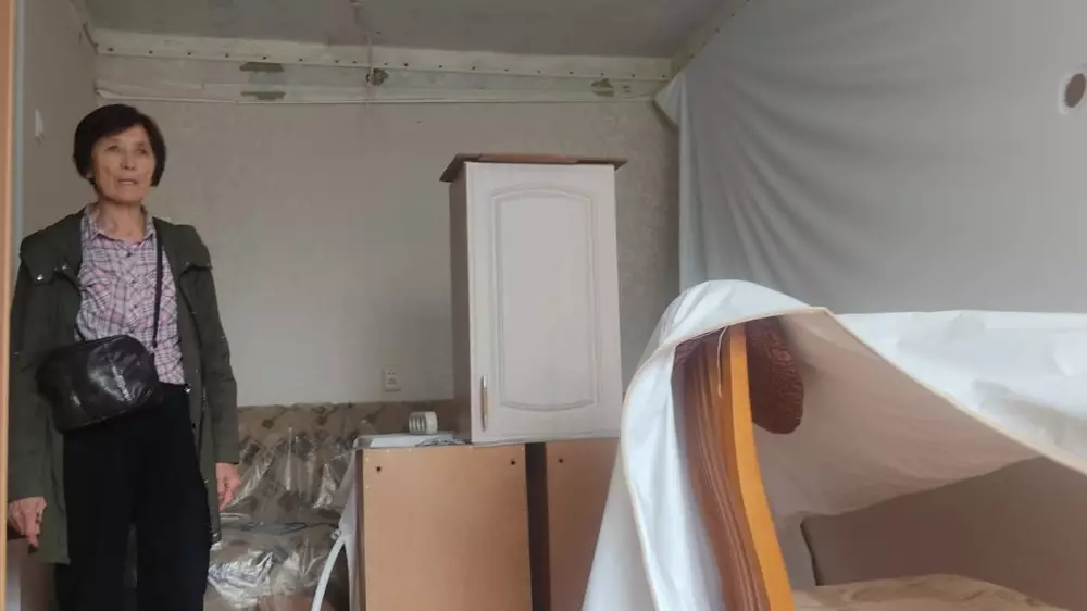 "Отопление прорвало из-за подрядной организации. Они на крыше складировали бревна и доски прямо на трубы. До ремонта кровли у нас вообще никогда не было проблем, хорошая крыша была. Старье – не отрицаю, но столбы деревянные, горбыли толстые, а сейчас положили тоненькие, причем промокшие, то, что пролежало под дождем. Аким и заместитель его бегали вокруг дома, пока не украсили весь фасад, а сейчас никому дела нет. Это кошмар был, когда второй раз с потолка стали бежать ручьи, я не спала несколько дней. Все было черное, всем акиматовским ребятам отправила, никто не отреагировал. Эти мокрые утеплители сразу не сняли, по этой причине лило. Бежала вода по швам, которые размыты. Ведь вычистили все утепление и изоляцию перед началом работ, все щели открытыми остались", - со слезами на глазах рассказывает Нурбану Измайлова.