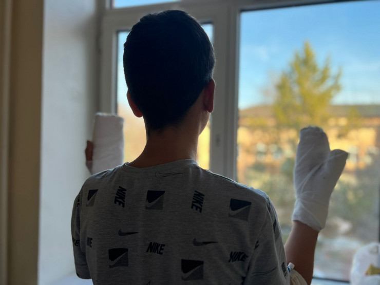 "Пациенту 12 лет. У него контузия глазного яблока, кровоизлияние в переднюю камеру глаза, термический ожог век, конъюнктива, роговицы III - IV степени. Инородное тело в конъюнктивальном мешке. По травматологии у ребенка закрытый перелом концевой фаланги безымянного пальца правой кисти, указательного пальца левой кисти. Термический ожог лица I-II-III степени, обеих кистей. Ушибленные раны пальцев правой кисти. По состоянию зрения пациент пока видит только белый свет, восстановится зрение или нет - выводы делать еще рано", - рассказал заведующий отделением офтальмологии Рахимжан Кебиров.