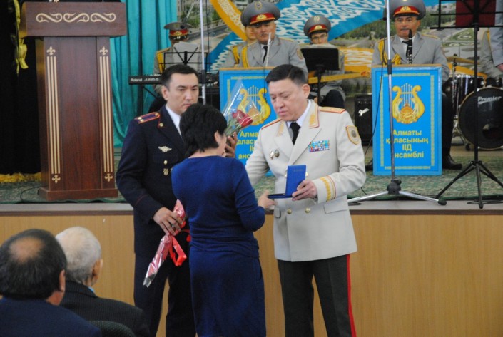 "25-летие Независимости Казахстана - это знаковое историческое событие для нашей страны. От имени руководства Министерства внутренних дел и от себя лично разрешите поздравить личный состав ДВД города Алматы, ветеранов органов внутренних дел, родных и близких наших сотрудников и ветеранов с национальным праздником - Днем Независимости Казахстана. Следует отметить, что благодаря усилиям Главы государства и всех казахстанцев за столь короткий период мы смогли построить современное сильное государство и стали полноправным участником мирового сообщества. Безусловно, динамичное развитие нашего государства было бы невозможным без обеспечения должного правопорядка и безопасности, защиты прав и интересов граждан и государства, на страже которых стоят органы внутренних дел. История казахстанской полиции насчитывает бесчисленное количество примеров героизма, мужества и самоотверженности личного состава, которые находясь на переднем крае борьбы с преступностью, ежедневно подвергают свою жизнь и здоровье огромному риску. За годы Независимости Казахстана при исполнении служебного долга погибли 837 сотрудников органов внутренних дел, почти 3 тысячи получили ранения. За проявленную отвагу и образцовое исполнение служебных обязанностей около 1100 сотрудников награждены государственными наградами и, к сожалению, 115 из них посмертно. Два офицера удостоены высокого звания "Халық қаһарманы" - капитан полиции Газиз Байтасов и полковник Кайрат Умбетов", - особо отметил заместитель министра внутренних дел РК Берик Бисенкулов.