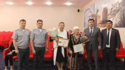 "За воспитание достойного гражданина и чуткого человека" руководство департамента Пограничной службы вручило благодарственное письмо матери пограничника Гульбаршын Басановой.