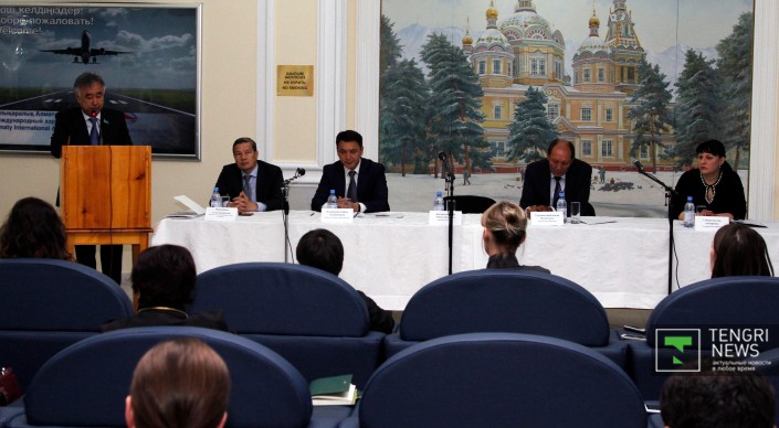 Сегодня, 8 октября руководство аэропорта международного аэропорта Алматы встретилось с журналистами. Поводом для пресс-конференции стал скандал с высокими ценами в ресторанах. Президент аэропорта Айбол Бекмухамбетов пояснил, что рычагов влияния на предпринимателей, которые являются собственниками площадей, он не имеет. Дело в том, что эти торговые площади были распроданы еще десять лет назад. Стоит отметить, что большинство из них, судя по предоставленным Бекмухамбетовым документам, принадлежит одному и тому же лицу - ТОО "Отар и Ко".