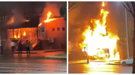На кадрах видно, что огонь охватил само кафе и распространился на несколько этажей вверх.