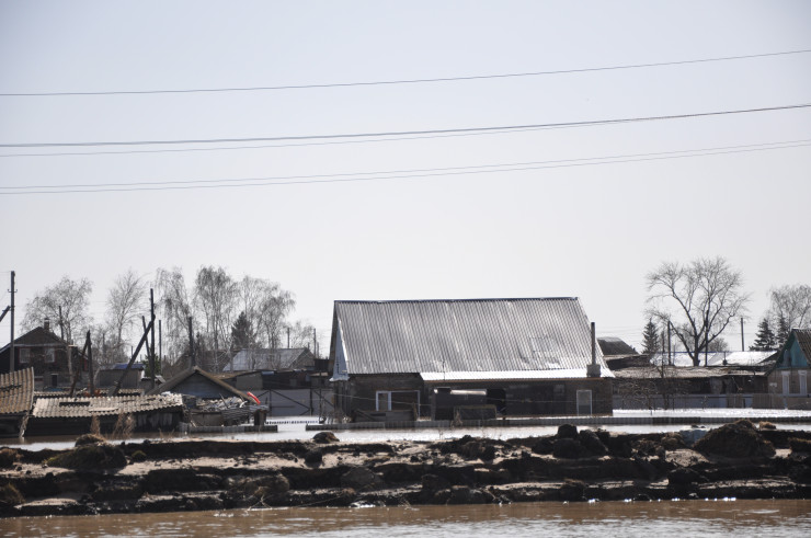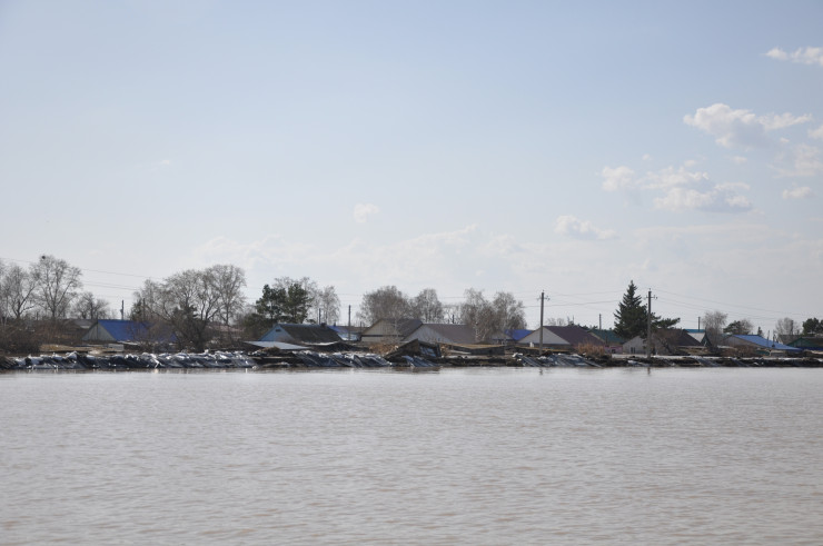Когда есть возможность, Нурлан подплывает к родному дому, точнее, к насыпной дамбе, которая должна была спасти строение от воды, но, к сожалению, не защитила. Даже издали видно, что вода выбила все стекла в новых пластиковых окнах. Но реальные масштабы разрушений станут ясны только после того, как из Прибрежного уйдет вода.