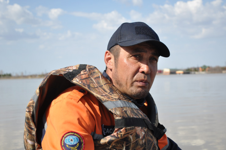 Во время паводков основной удар также принимают на себя спасатели. Нурлан вспоминает наводнение 2017 года, тогда он с коллегами укреплял дамбы, откачивал воду, переселял жителей, помогал перевозить скот, вел круглосуточное дежурство вблизи подтопленных поселков. Но паводок этого года оказался страшнее и тяжелее во всех отношениях, говорит Нурлан.