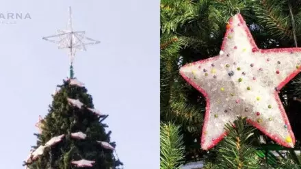 "Эти елки состоят из следующих частей: корона "Звезда" на центральной площади длиной 200 сантиметров; 200 штук светодиодных гирлянд по 10 метров; игрушка "Звезда" - 47 сантиметров, 25 штук; игрушка "Звезда" - 36 сантиметров, 220 штук; 245 звездообразных адаптеров питания.