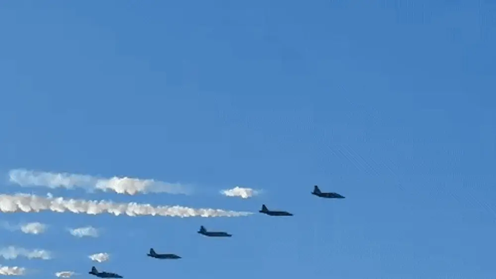 На кадрах видно, что воздушные суда оставляют после себя продолжительный дымовой шлейф.