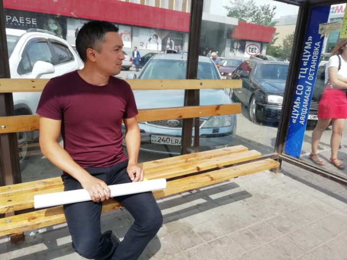 Полицейские подошли к молодому человеку в центре города. 31-летний художник Дархан Бегайдаров вместе с супругой ждал в это время автобус на остановке. Стражи порядка сообщили, что на мужчину пришла ориентировка, и попросили развернуть ватман. Убедившись в том, что он пуст, проверили документы и сообщили об этом по рации.