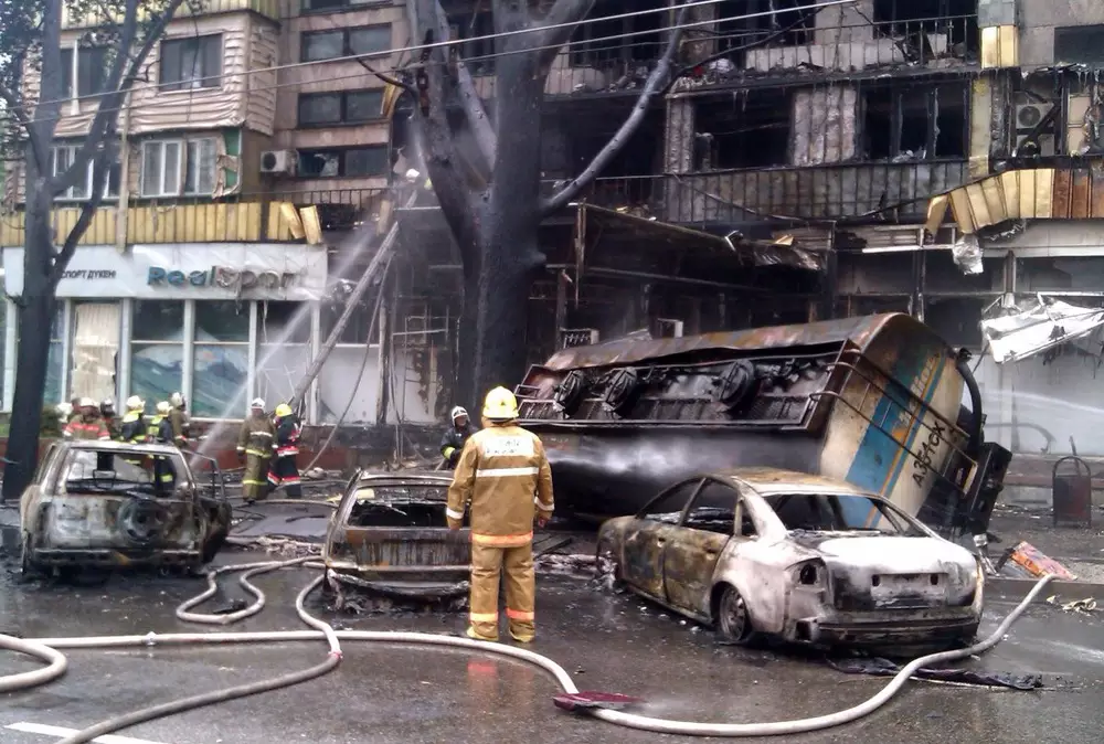 Полиция Алматы установила личность водителя бензовоза, который сгорел заживо в результате крупного ЧП, передает корреспондент Tengrinews.kz. В ДВД сказали, что мужчине было 27 лет, он являлся жителем Илийского района Алматинской области. Работал водителем в компании "Гелиос". По информации службы спасения Алматы, имя погибшего - Александр Горюнов. Как рассказали коллеги водителя, у него остались две маленькие дочери. Старшая идет в школу в этом году, младшая - на грудном вскармливании. В полиции добавили, что тело мужчины доставлено в морг, начата судебно-медицинская экспертиза. Исследование также должно показать, был ли он в нетрезвом состоянии в момент вождения. По данным ДВД, уголовное дело возбуждено по статьям "Недоброкачественный ремонт транспортных средств и выпуск их в эксплуатацию с техническими неисправностями, допуск к управлению транспортным средством лица, находящегося в состоянии опьянения" и "Нарушение правил дорожного движения и эксплуатации транспортных средств лицами, управляющими транспортными средствами". Ответственным лицам грозит до пяти лет лишения свободы. Видео Kolotov Nikolay Видео areke79 Напомним, бензовоз взорвался утром 27 июня на пересечении проспекта Сейфуллина и улицы Кабанбай батыра. Водитель машины погиб. Огонь перекинулся на многоэтажный дом по адресу: улица Кабанбай батыра, 138.