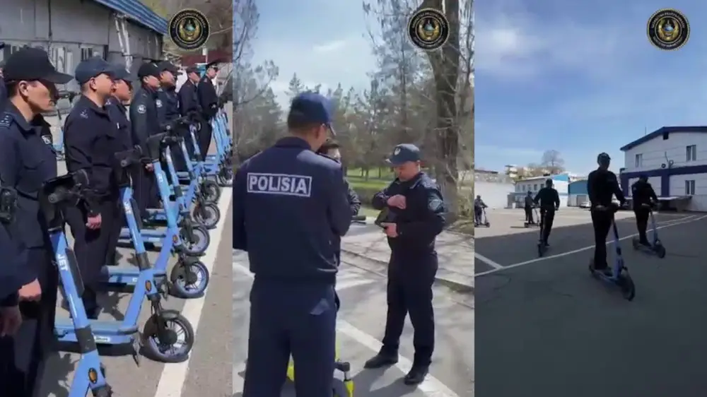 Полицейские пересели на электросамокаты в Алматы Кадры из видео