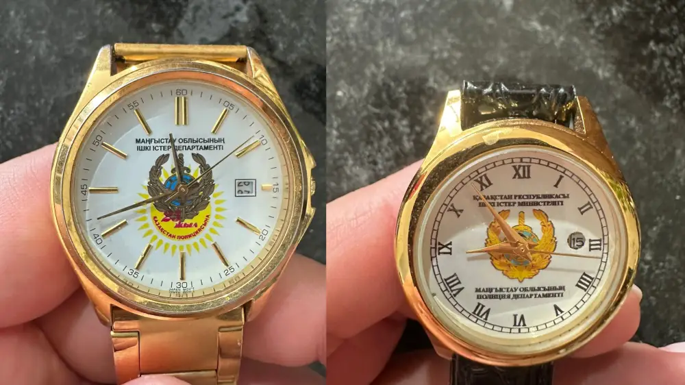 На сайте госзакупок департамент полиции Мангистауской области разместил объявление о покупке сувенирных часов. В документах написано, что часы должны быть покрыты тонким слоем золота, а ремень от аксессуара - непременно из телячьей кожи.