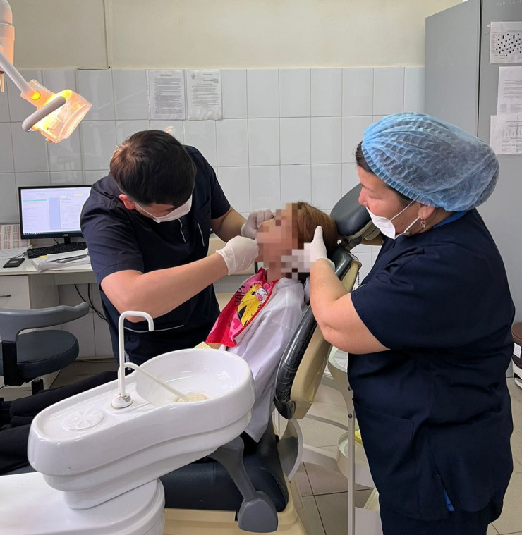 К словам стоматолога присоединяются старший дантист Лаура Баимбетова и медсестра Майя Кабыл.