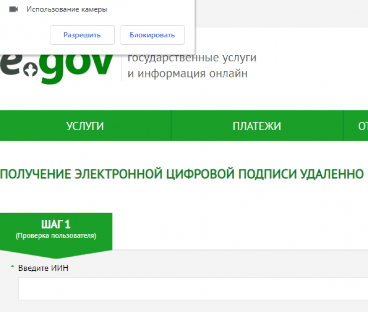После проверки системой наличия на компьютере веб-камеры нажать "Разрешить" во всплывшем окне. При отсутствии на компьютере камеры получить ЭЦП онлайн не получится.