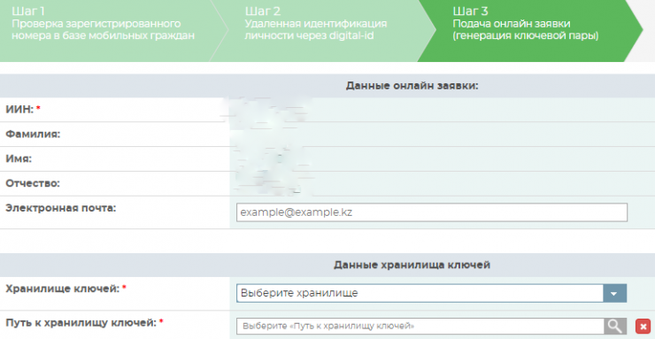 Далее необходимо указать путь к хранилищу ключей для сохранения ЭЦП и нажать на кнопку "Открыть", а затем "Подать заявку".