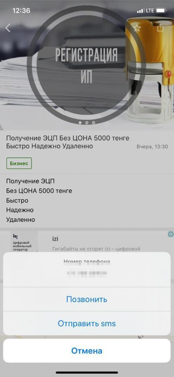 В социальных сетях распространяются объявления о помощи в оформлении электронной цифровой подписи (ЭЦП), пособий во время чрезвычайного положения в Казахстане и других государственных услуг за деньги.