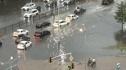 Прошлым летом в социальных сетях распространялись видео того, как улицы столицы оказались затоплены из-за сильного ливня и града. Сквозь воду почти не было видно асфальта, а машины превратились в плавательные средства.