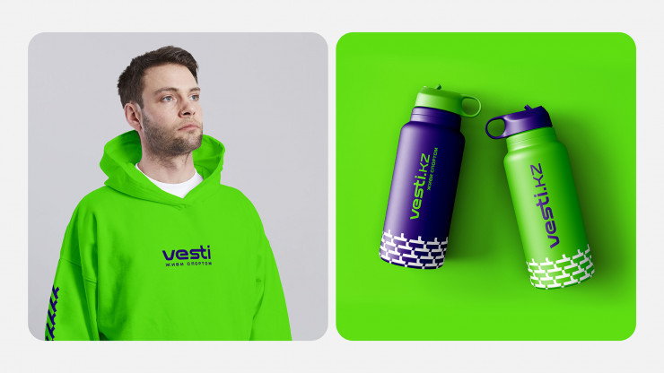 Логотип Vesti.kz претерпел значительные изменения. Современная спортивная типографика и элемент в виде стрелки подчеркивают движение и точность, отражая динамичность и оперативность сайта.