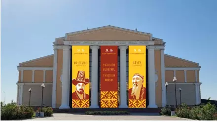 На зданиях Дворца торжеств "Туркестан" и казахского академического драматеческого театра имени Шанина вывесили огромные портреты великих кюйши в стиле поп-арт. Так креативно власти продемонстрировали роль легендарных казахских мастеров игры на домбре - Курмангазы, Дины, Таттимбета, Даулеткерея, Кенена Азирбаева, Биржан-сала, Казангапа, Жаяу мусы. Их изображения также появились на городских билбордах.