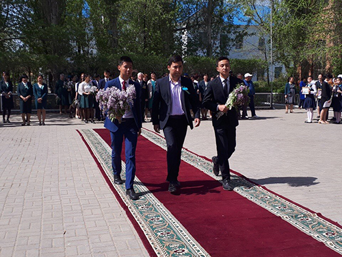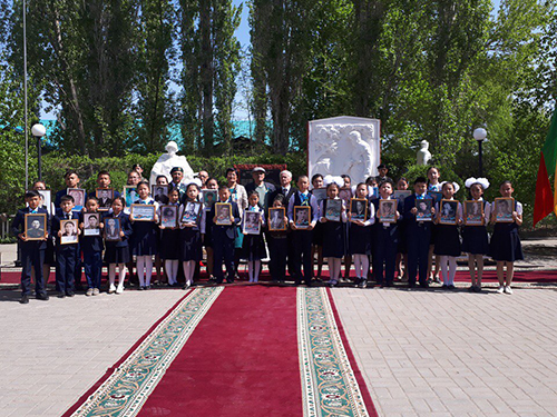 В День Победы в Шалкаре чтут память погибшего класса. В этом году, как и всегда, во дворе школы было многолюдно. Дети, учителя, жители города собрались на митинг. Внуки и правнуки ветеранов прошли с фотографиями своих прадедов. После минуты молчания дети, учителя и родители возложили цветы к подножью обелиска.
