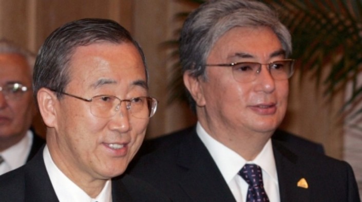 Пан Ги Мун и Касым-Жомарт Токаев в Алматы. Июль 2006 года © REUTERS