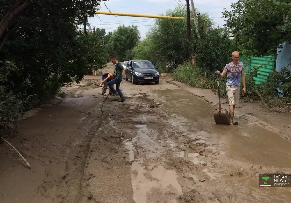 Он поясняет, что люди вычищают улицу и дворы самостоятельно, своими силами, не дождавшись спецтехники. "У меня весь двор, газон полностью в глине. Сейчас уже проще. Люди всем миром помогают, работают. Но улица до сих пор не очищена. В сапогах пройти невозможно, люди ходят босиком, потому что бесполезно обуваться. За эти дни из акимата вчера вечером пришли - переписывали, у кого что пострадало. Такое ощущение, что для проформы. Но ни техники, ни представителей акимата не было. (...) Никто из жителей на работу не может выехать, всем миром пытаются что-то почистить. Но в первую очередь люди чистят свои дворы, а выносить весь хлам, мусор, глину куда? Только на проезжую часть. Сейчас по проезжей части здесь редкая машина проедет", - объясняет Владимир Чен.