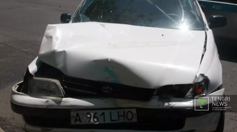 Пострадавший в ДТП в Алматы полицейский находится в крайне тяжелом состоянии Поврежденный автомобиль на месте происшествия. ©Чингиз Джумагулов