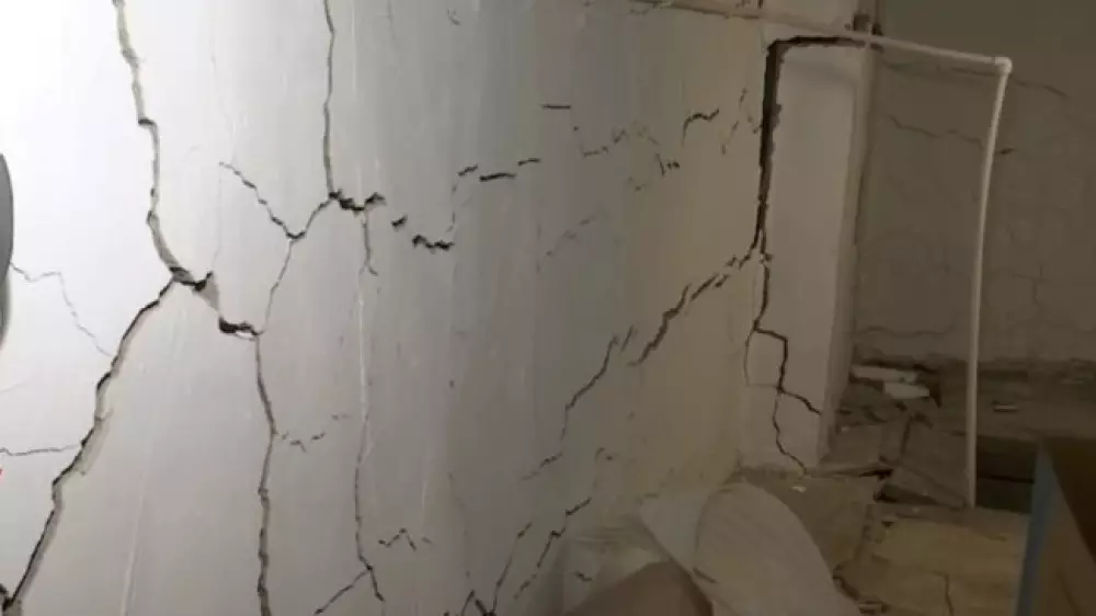 Построенная по госпрограмме новостройка разрушается в Актобе Кадр из видео КТК.