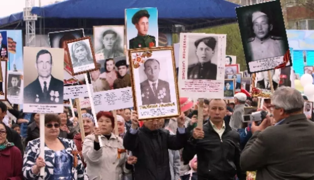 Сотни актюбинцев прошли в День Победы по главному проспекту города с портретами своих родных, воевавших в годы Великой Отечественной войны. © diapazon.kz