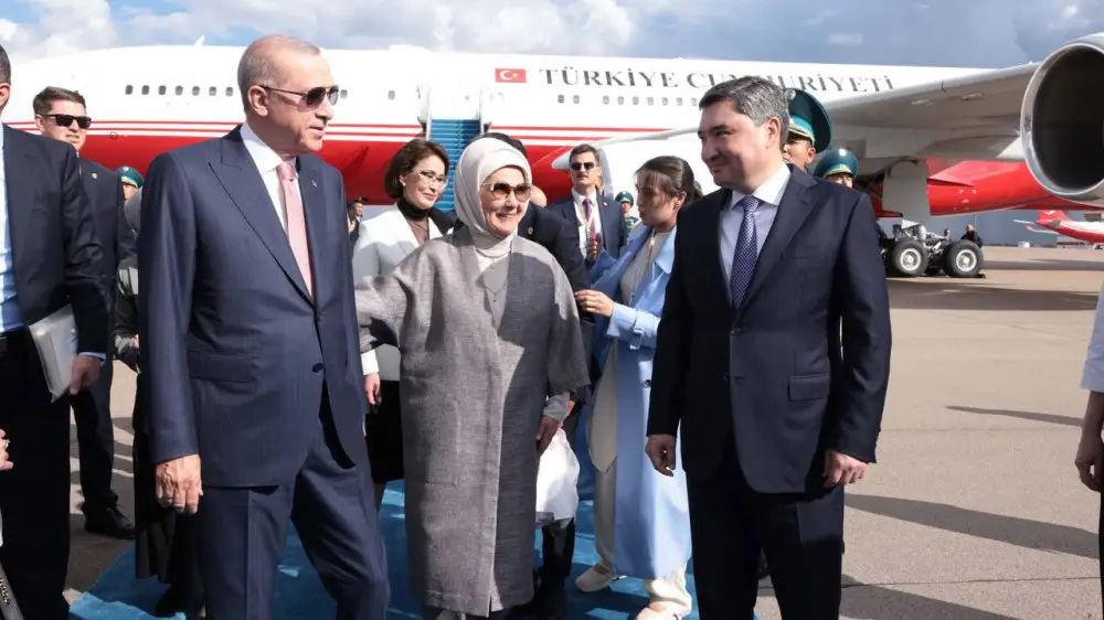В столицу Казахстана для участия в саммите Шанхайской организации сотрудничества (ШОС) прибыл турецкий лидер Реджеп Тайип Эрдоган вместе с супругой. В аэропорту их встретил премьер-министр Казахстана Олжас Бектенов, передает Tengrinews.kz со ссылкой на Telegram-канал правительства.