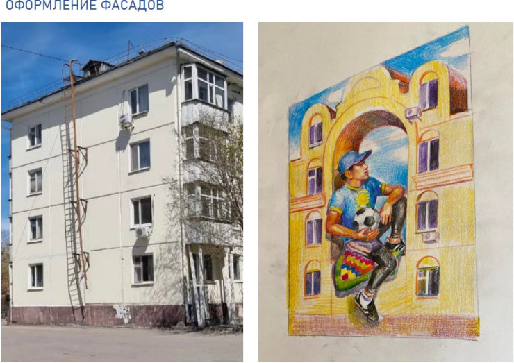 Также предусмотрели и оформление в ночное время - световые консоли, перетяжки, гирлянды. Для комфортности вечерних прогулок проведут фасадное освещение. Фасады некоторых домов украсят граффити. Будут установлены и конструкции для граффити-фестивалей.