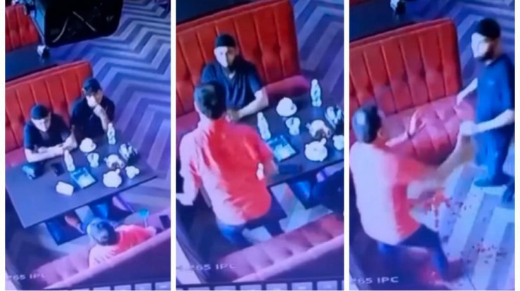 Камеры видеонаблюдения зафиксировали преступление. Мухангалиев и еще двое мужчин сидели за столиком. В какой-то момент один из них ударил бизнесмена ножом. Мухангалиев пытался убежать от преступников, но те его догнали и добили уже на улице.