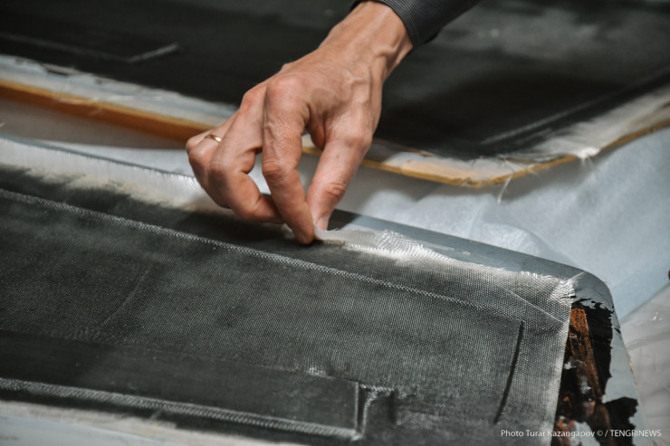 Затем на матрицу накладываются и склеиваются несколько слоев разных покрытий: ткань, карбон, стеклоткань. Особенность этих материалов в их легкости и способности держать динамические удары.