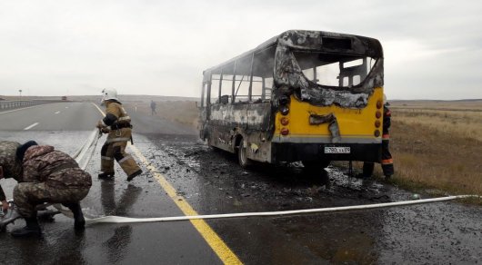 Спустя несколько месяцев пассажирский автобус сгорел на трассе Актау - Каражанбас в Мангистауской области.