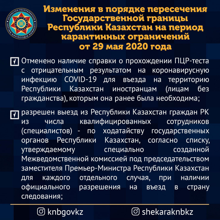 - Отменено требование справки о прохождении ПЦР-теста с отрицательным результатом на коронавирус для въезда в Казахстан иностранцам.