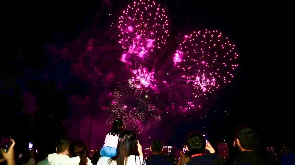 Фейерверк запустили в районе 23:00 часов с Ботанического сада. Общая продолжительность салюта составила 5 минут, а количество выстрелов более 1 700.